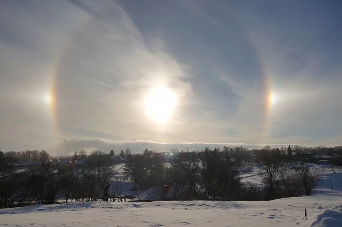 «Это явление называется гало. При морозах свет преломляется на 20° от солнца, поэтому возникает нечто похожее на солнце», — рассказал aif.ru специалист.