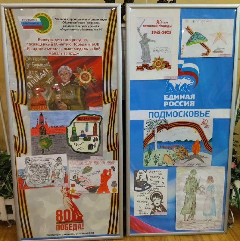 В упаковках находятся окопные свечи, средства гигиены, кондитерские изделия, тёплые вязаные носки и рисунки детей, посвящённые 80-ю Победы советского народа в Великой Отечественной войне.