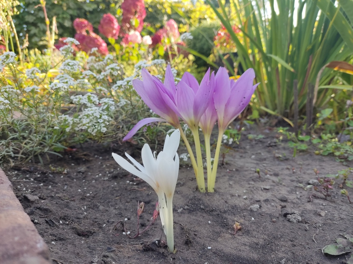 После долгого ожидания всходов, наконец-то, безвременные цветы показали свою красоту. Посаженные в ноябре прошлого года, они только сейчас распустились. Сложный год обучения завершен, и садоводы теперь могут смело утверждать, что ноябрь — вполне подходящий месяц для посадки безвременников, несмотря на недоразумения по поводу их классификации. Даже если кто-то не понимает, как отличить безвременники от осенних крокусов, главное, что цветы радуют глаз.