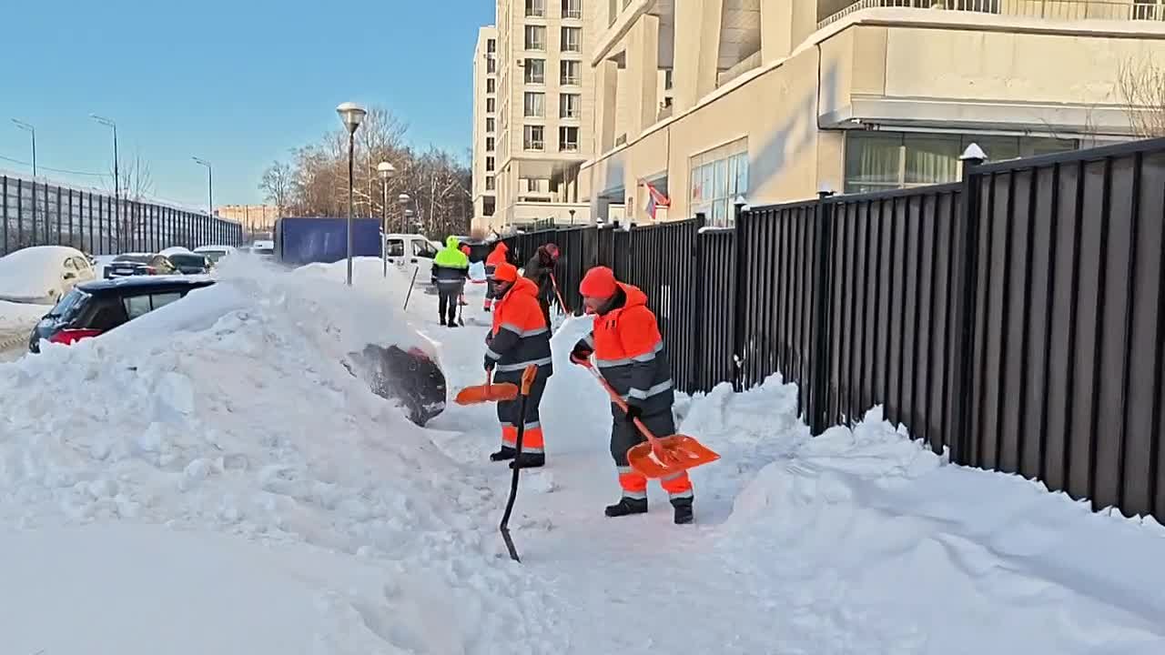 Активно идет уборка снега в ЖК «Акварели». Здесь к субботнику присоединились более 100 человек. Помогает расчищать территорию 8 единиц техники.