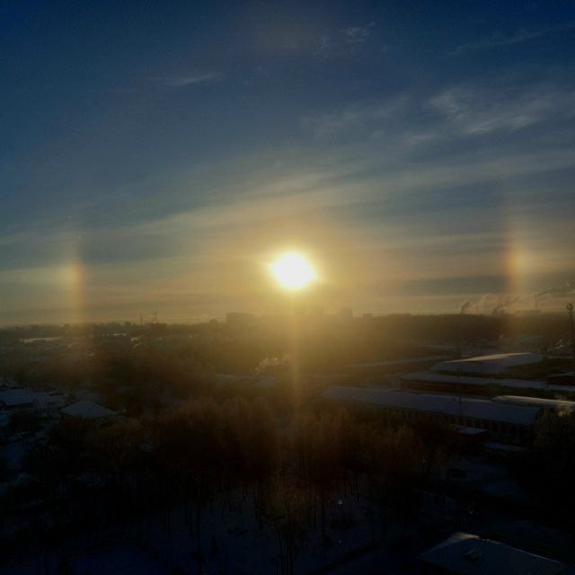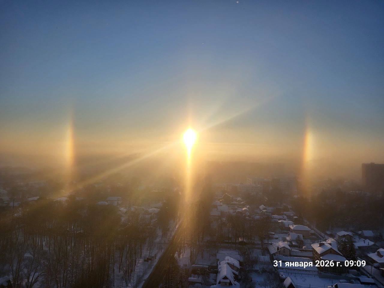 Утром 31 января в подмосковных Химках заметили другую оптическую иллюзию — солнечное гало. Его можно увидеть в морозную и влажную погоду. Также Гало было видно в Кирове, Мурманске и других северных городах.