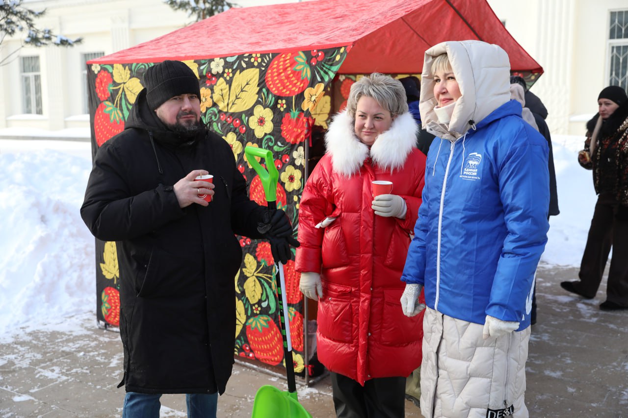 Лопатами собравшихся обеспечило городское отделение «Единой России», оно же организовало для участников зимнего субботника горячий чай и вкусное угощение.