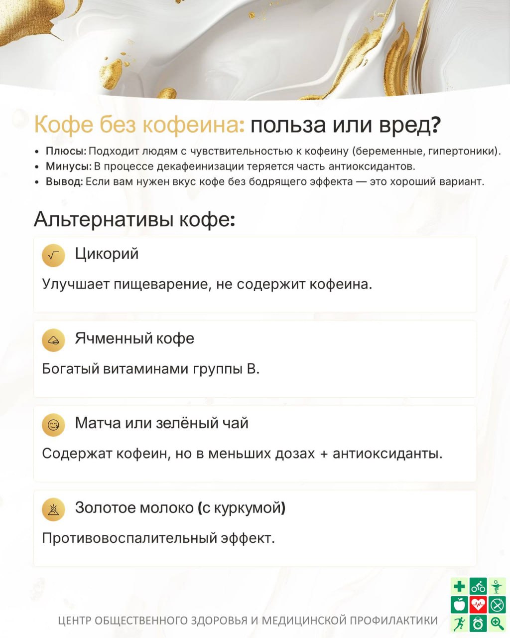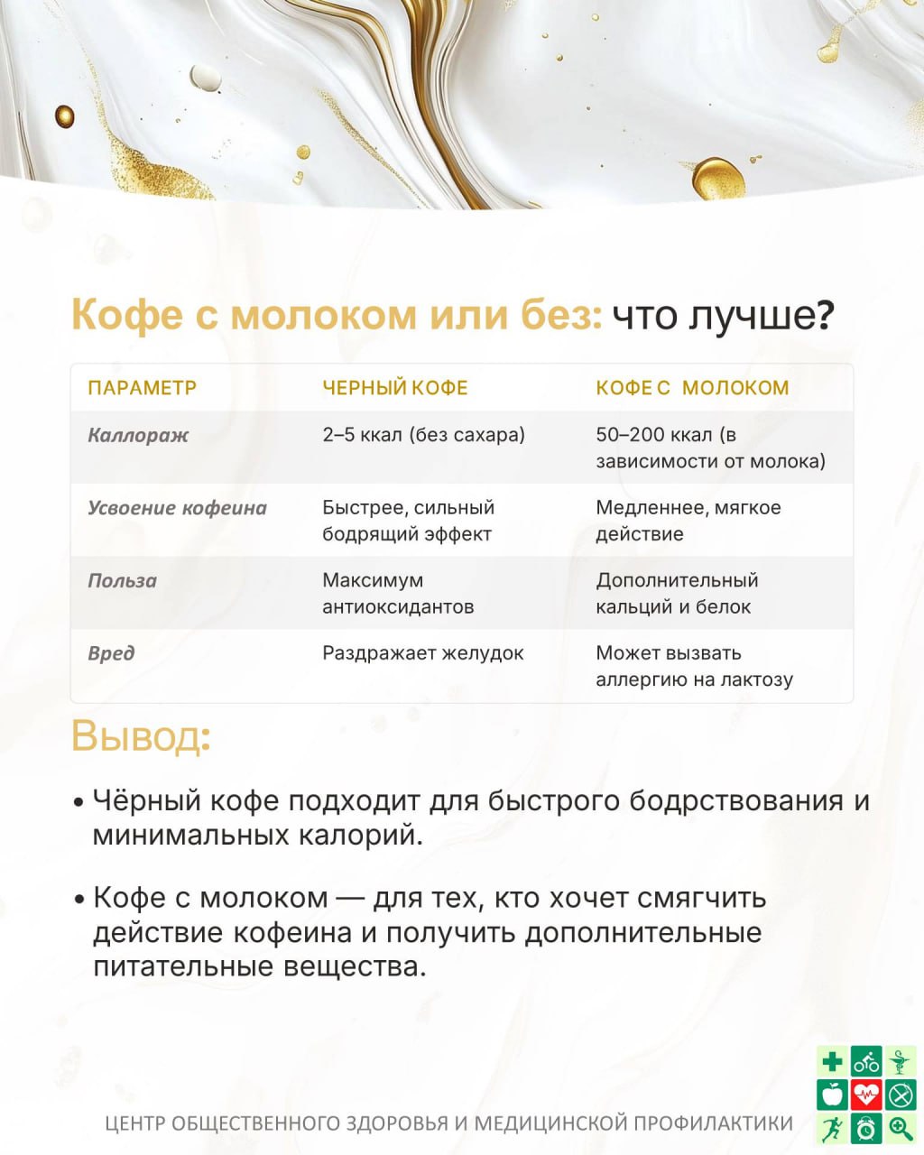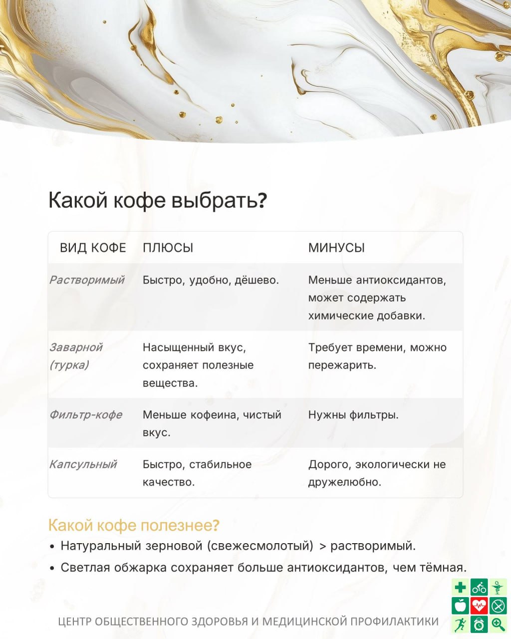 В карточках Центра общественного здоровья и медицинской профилактики, разобраны все нюансы этого напитка, чтобы вы могли наслаждаться кофе максимально безопасно и с пользой для здоровья.