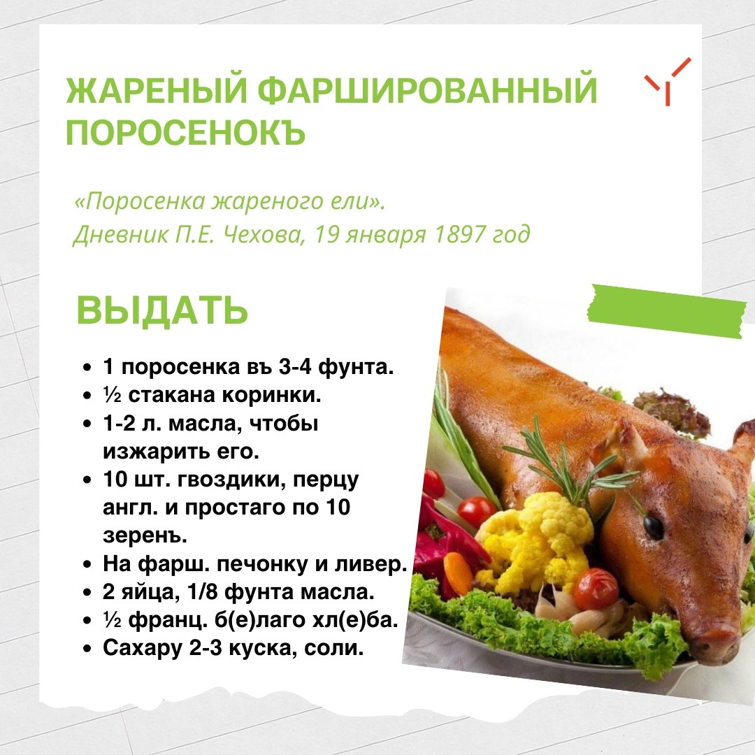Поросенка жареного ели, писал в своем дневнике 19 января 1897 года П.Е. Чехов.