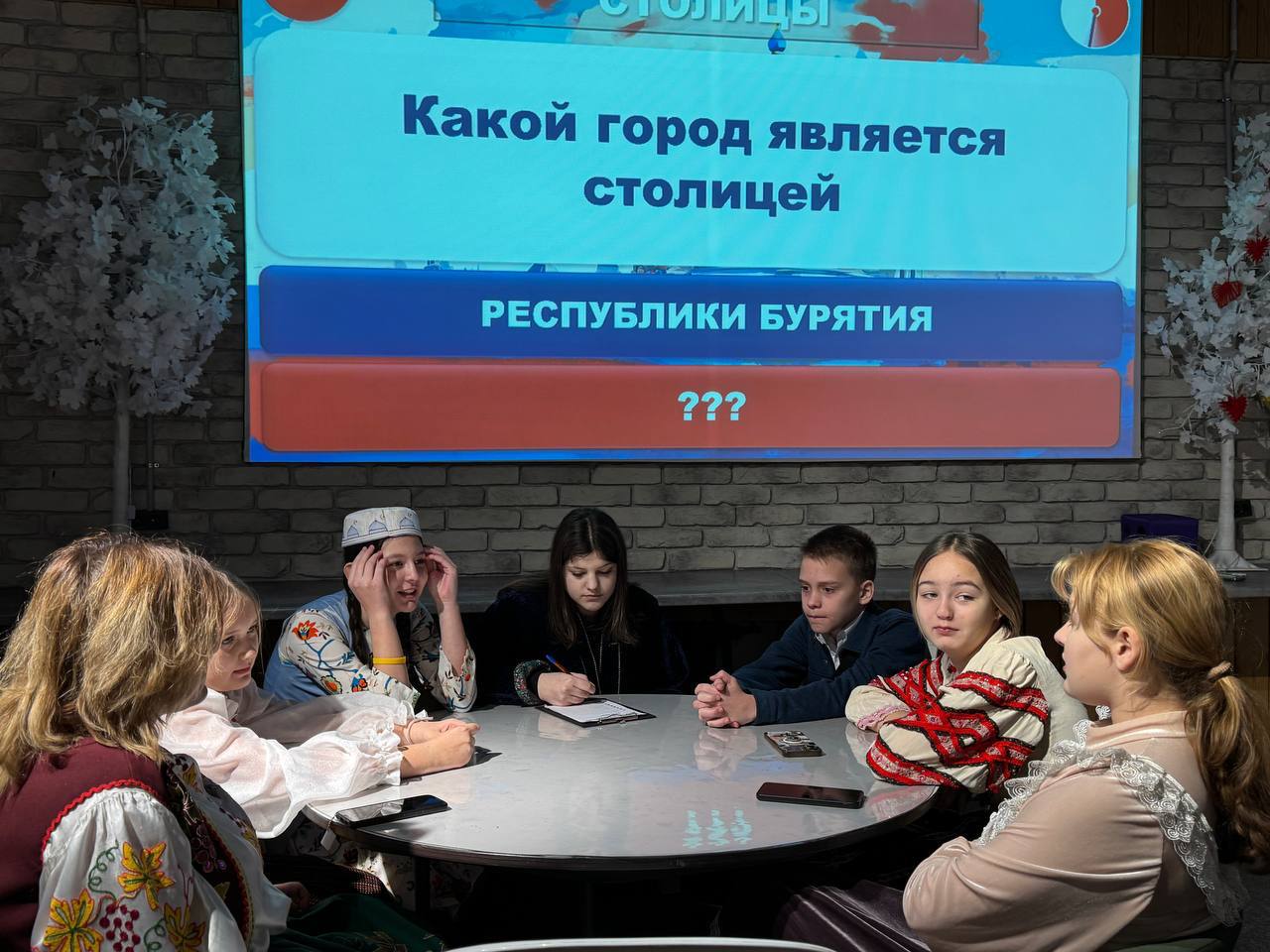 Главной частью стал интерактивный викторина Год Единства. Участники отвечали на вопросы о культуре народов России, угадывали переводы фраз на разных языках и определяли города по фотографиям достопримечательностей.