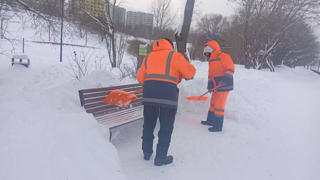 Особое внимание уделяют паркам и скверам — местам ежедневного отдыха жителей. Специалисты расчищают пешеходные дорожки, входные группы, лестницы, подходы к скамейкам и урнам. Снег вывозят на специальные площадки, дорожки и тротуары обрабатывают противогололёдными материалами.