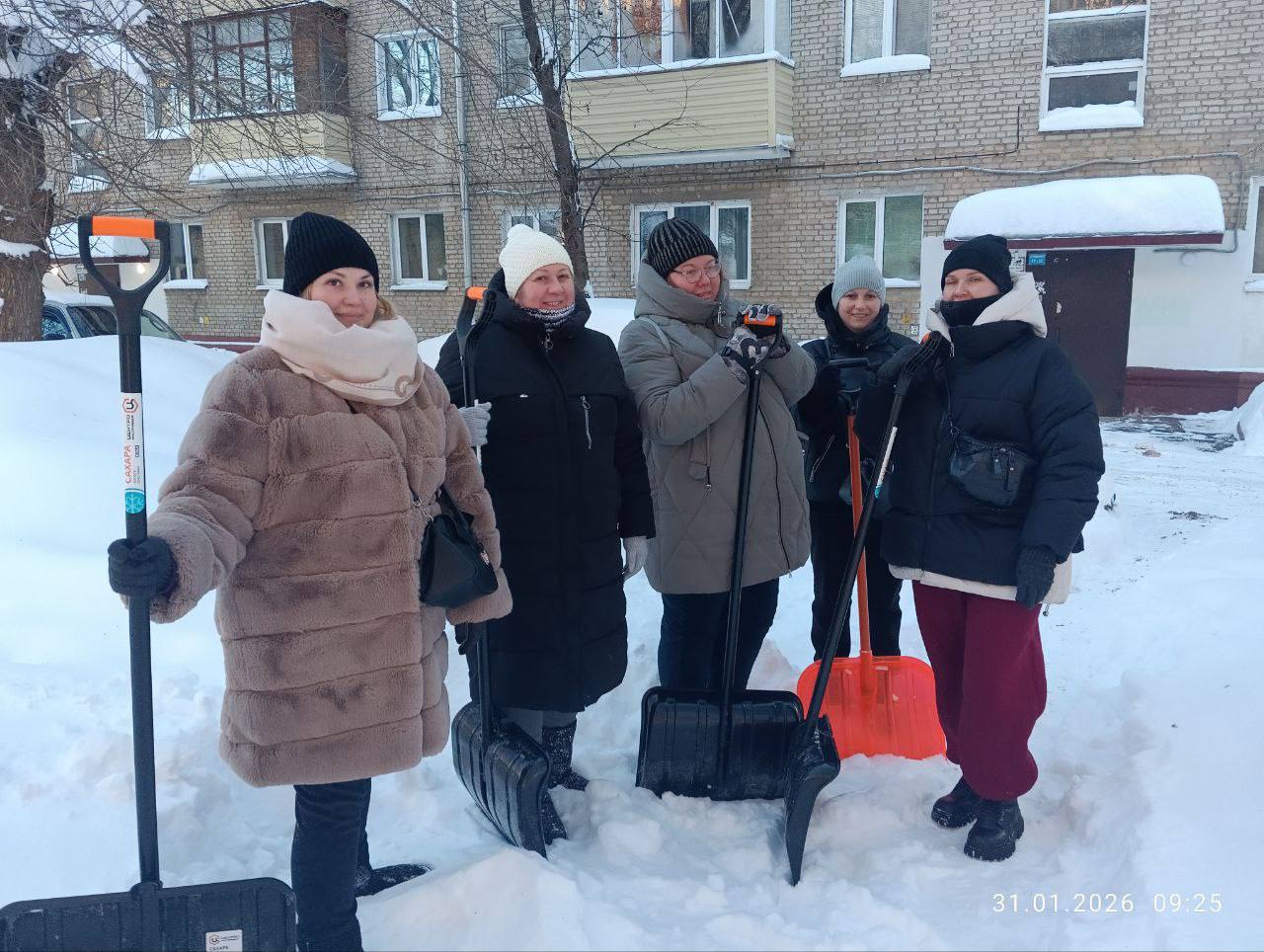 Специалисты, которые обычно работают за компьютерами, бухгалтеры, юристы и руководители организаций сменили офисную обстановку на работу во дворах. Вместе с рабочими они расчищали проезжие части, тротуары и пешеходные тропинки.