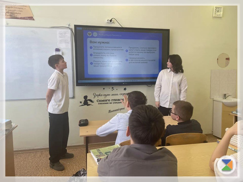 Занятие началось с викторины: ребята определяли специальности работников бизнессферы, затем познакомились с различными формами бизнеса и этапами создания собственного дела.
