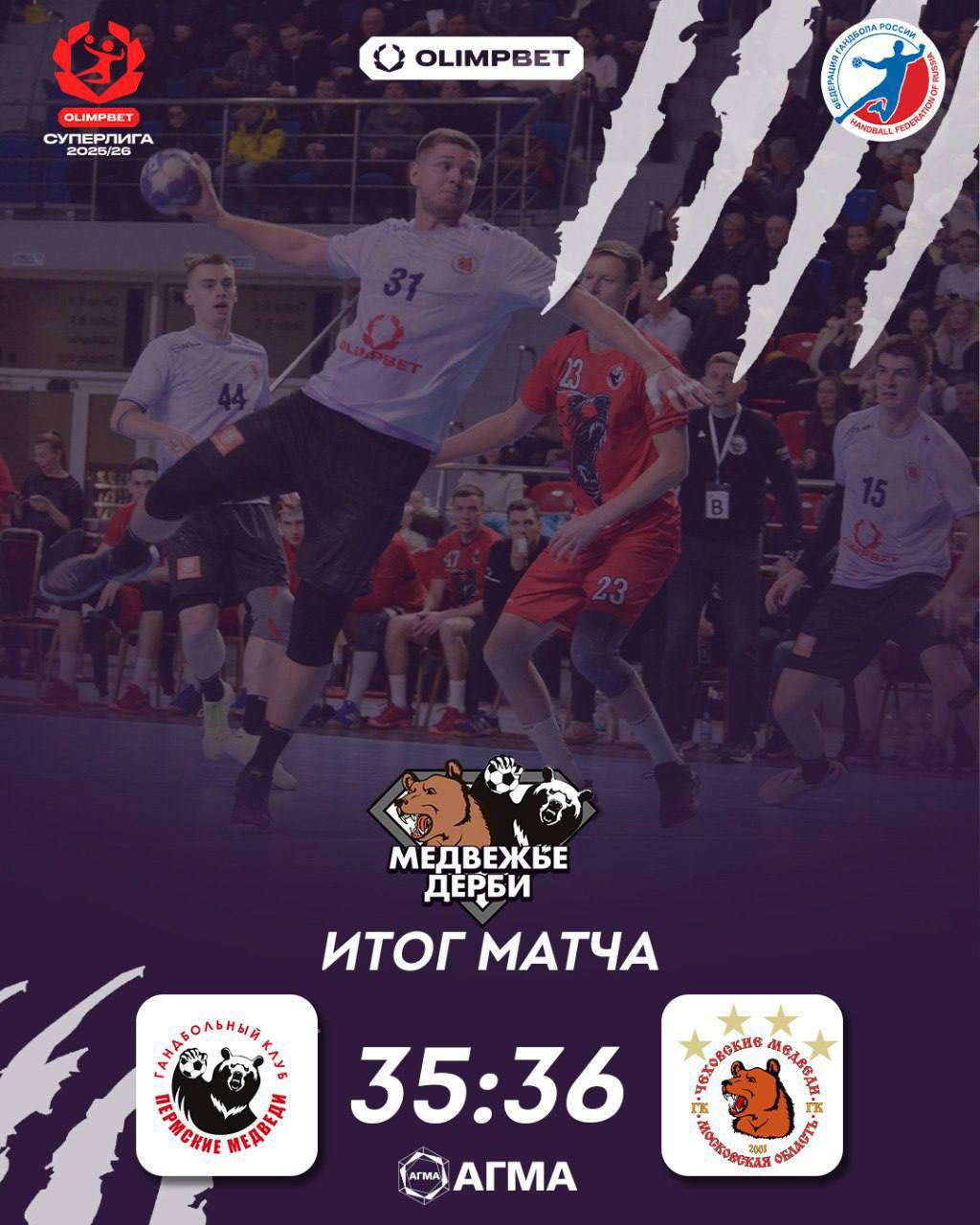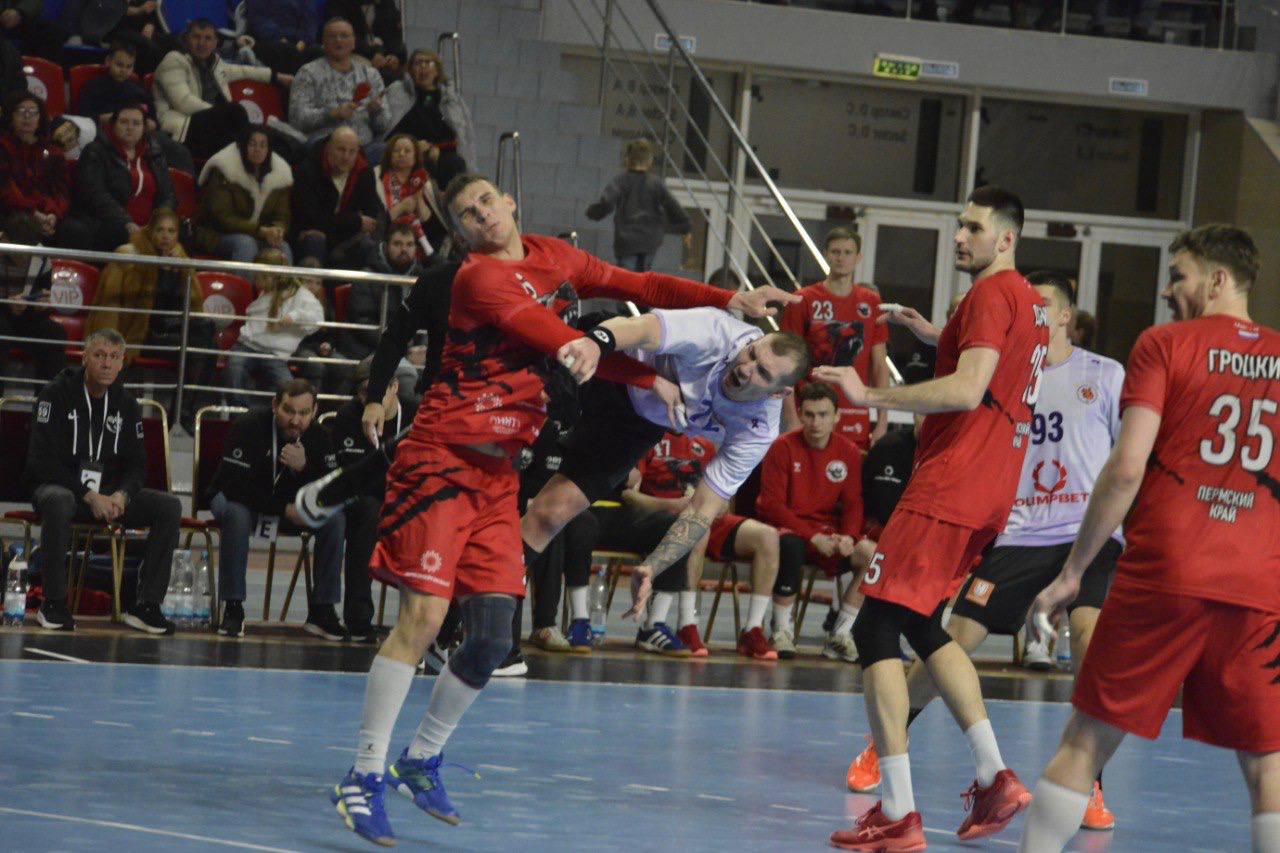 Сегодня в Перми прошла первая встреча четвертьфинала Кубка России по гандболу. В медвежьем дерби за выход в следующий этап соревнований сразились команды Перми и Чехова. Матч закончился победой гостей из Подмосковья. Итог - 35:36 (16:21).
