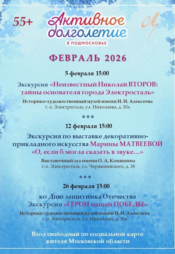 Музейно-выставочный центр приглашает участников проекта Активное долголетие на бесплатные экскурсии в феврале.