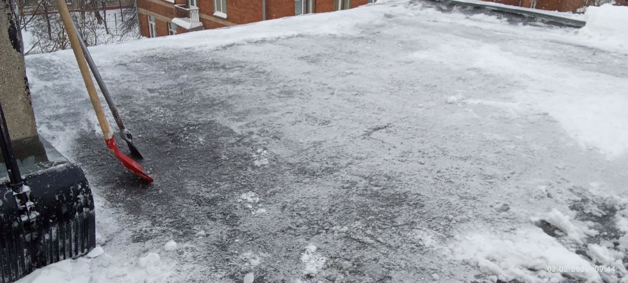 Как пояснили в управляющей компании, над устранением снега и наледи сегодня, 3 февраля, работают три бригады.