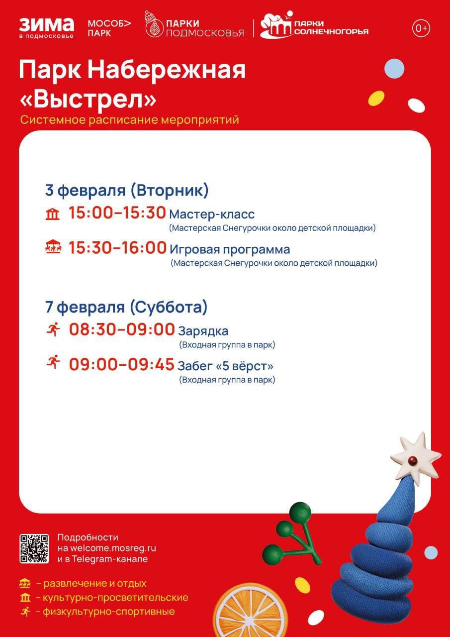 На этой неделе в парках Солнечногорска маленьких и взрослых жителей ждет множество активностей: от утренних оздоровительных тренировок до зимних творческих мастер-классов.