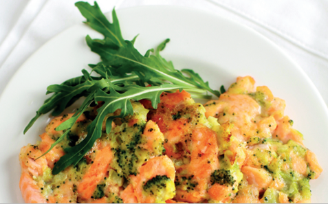 Брокколи необходимо разберите на соцветия и отварите в течение 2-3 минут. После этого обдайте их холодной водой и нарежьте мелко. Филе лосося нарежьте на небольшие кубики (примерно 1x1 см) или воспользуйтесь рыбным фаршем. Объедините ингредиенты: кубики лосося, брокколи, яйцо, добавьте соль и муку, тщательно перемешайте.