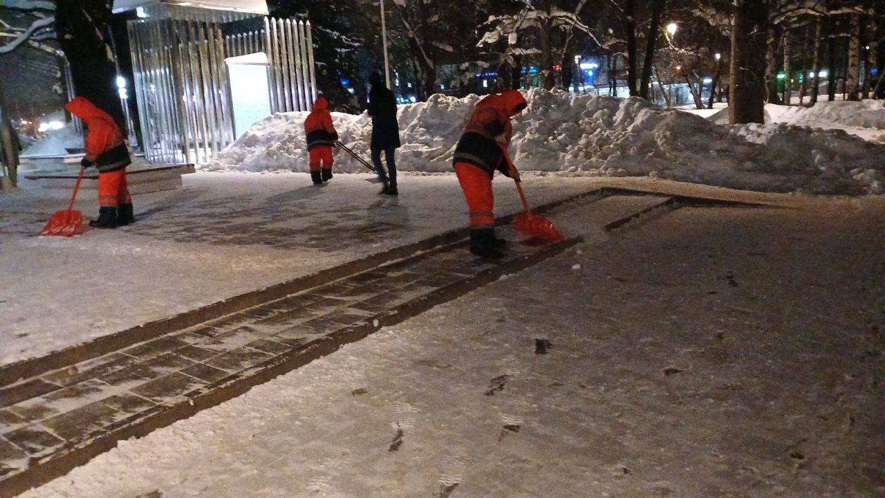 Параллельно ведётся уборка дворовых территорий, автомобильных дорог и тротуаров. Работы выполняются вручную и с помощью специальной техники. Комбинированные дорожные машины, тракторы и мини погрузчики помогают убрать большие объёмы осадков.