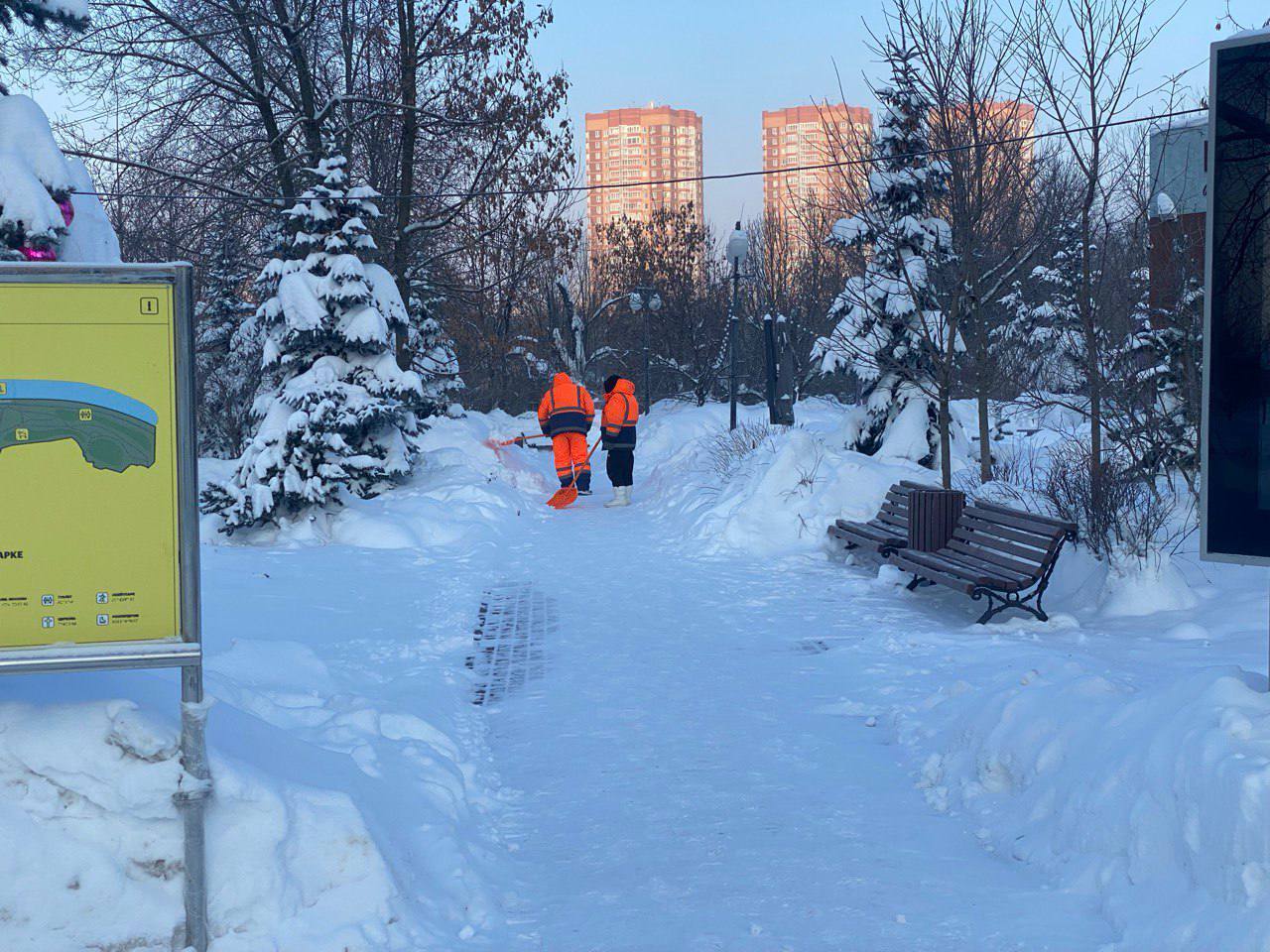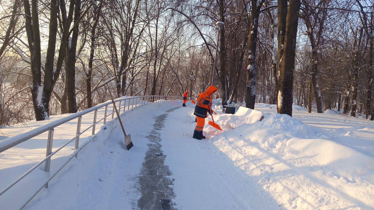 Особое внимание уделяют расчистке городских парков и скверов. Специалисты очищают прогулочные дорожки, входные группы, лестницы, подходы к лавочкам и урнам. Специалисты вывозят снег на специализированные площадки, дороги и тротуары обрабатывают противогололёдными материалами.