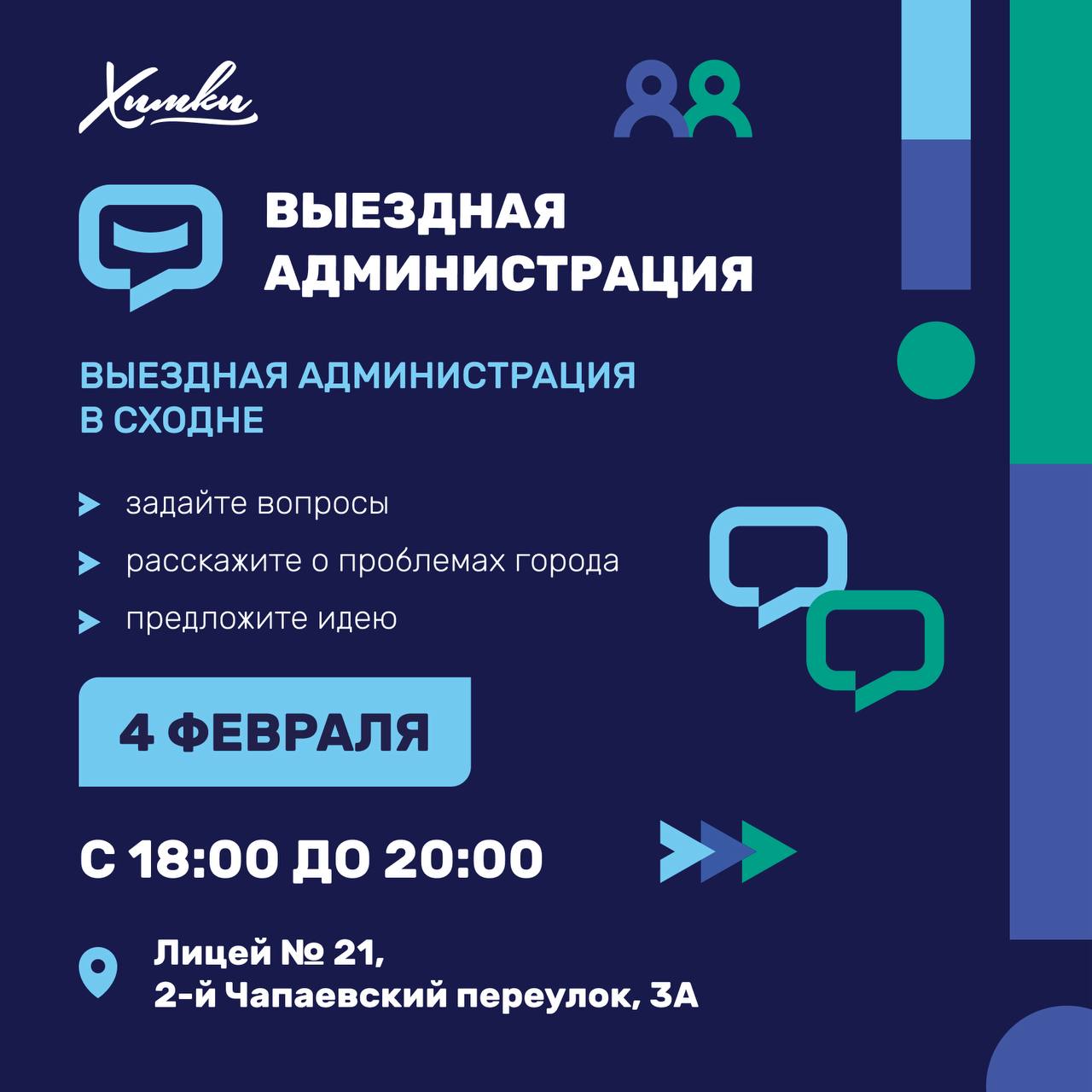Ждём вас завтра, 4 февраля, на выездной администрации по адресу: Сходня, 2-й Чапаевский переулок, 3а (лицей 21).