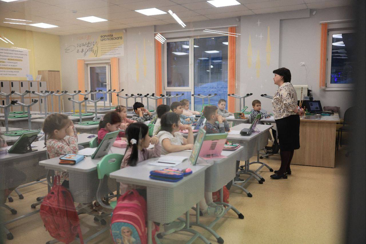 Помню несколько лет назад мы с главой стояли здесь у окна и обсуждали варианты сноса соседнего старого административного здания и строительства на его месте нового корпуса этой школы. А в прошлом году на этом месте рядом со школой уже открылся новенький только построенный корпус на 400 мест для начальных классов.