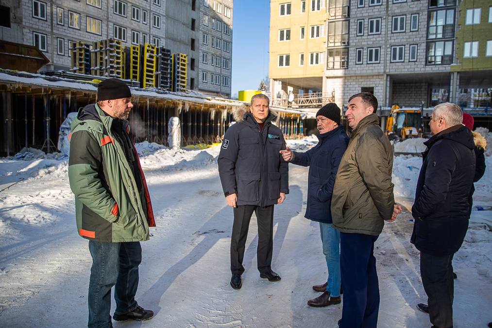 Проинспектировал ход работ на площадке. Общая готовность объекта — около 80%. Сейчас подрядчик устанавливает оконные блоки и ведёт утепление фасадов. После этого приступят к монтажу навесных вентилируемых плит из керамогранита, на первом этаже выполнят облицовку клинкерной плиткой. Параллельно продолжается устройство перекрытий подземной парковки.