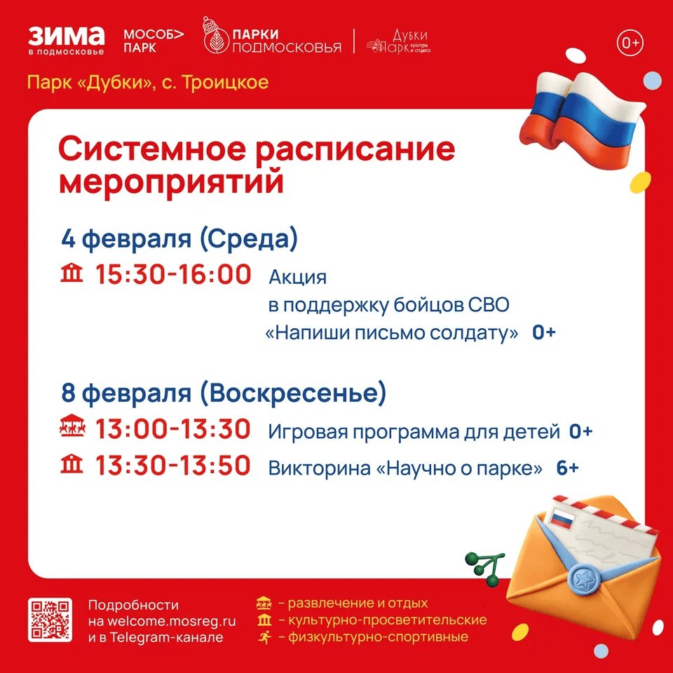Расписание в парке Дубки на эту неделю