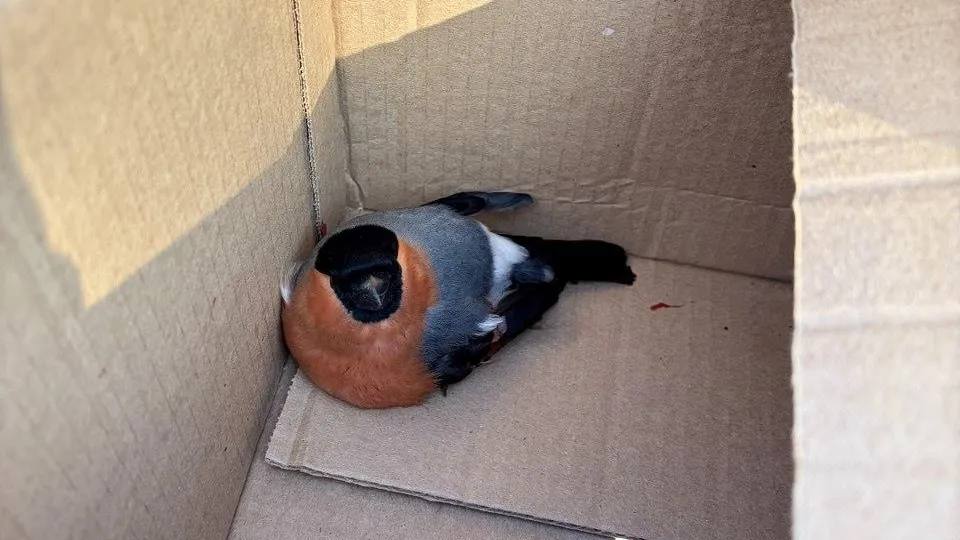 Лесничий согрел снегиря в машине, напоил и накормил, а затем отвез к ветеринару. У птицы диагностировали несложный перелом крыла — при правильном уходе она сможет восстановиться.