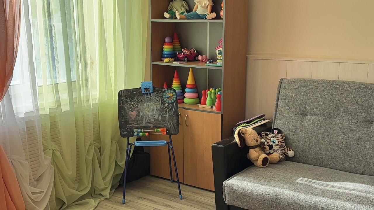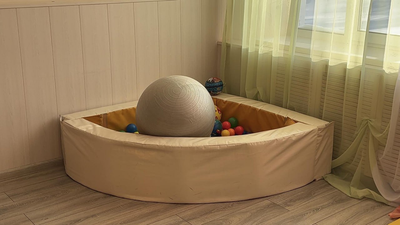 «Для того чтобы развитие деток шло гармонично, у нас здесь много уголков, которые помогают. Первое — это двигательная рекреация, которая в основном рассчитана на деток с расстройством аустического спектра, помогает им переключиться. Также в нашем здании создана очень хорошая сенсорная комната. Это и сухой бассейн, и пузырьковая труба, то есть все для релаксации. Также у наших деток есть кабинет логопеда», — говорит Ирина Борисовна.