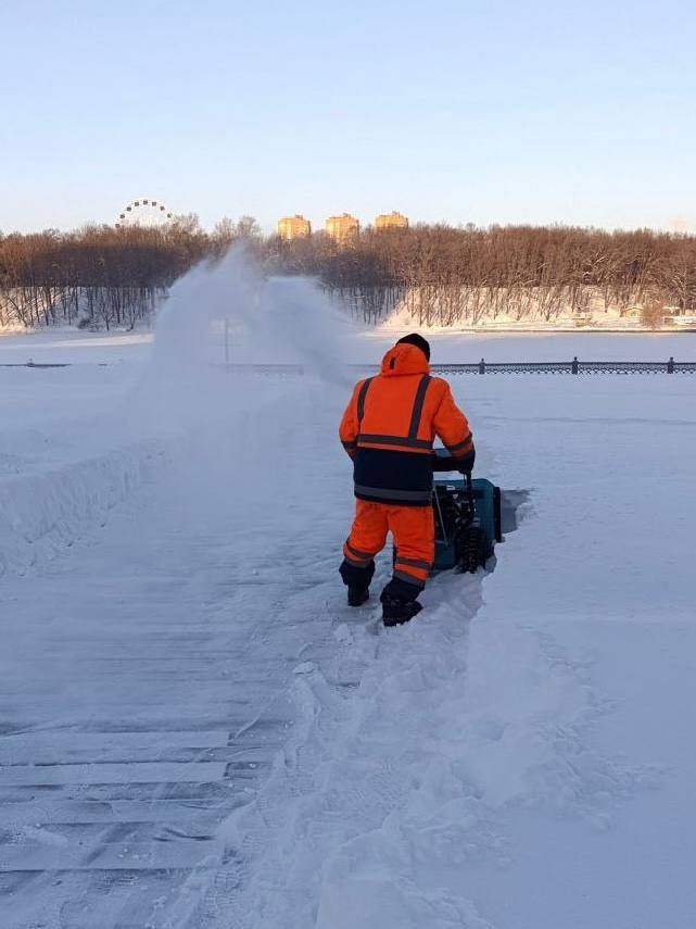 Особое внимание уделяют расчистке городских парков и скверов. Специалисты очищают прогулочные дорожки, входные группы, лестницы, подходы к лавочкам и урнам. Дорожки и тротуары обрабатывают специальными материалами, чтобы снизить вероятность образования наледи.