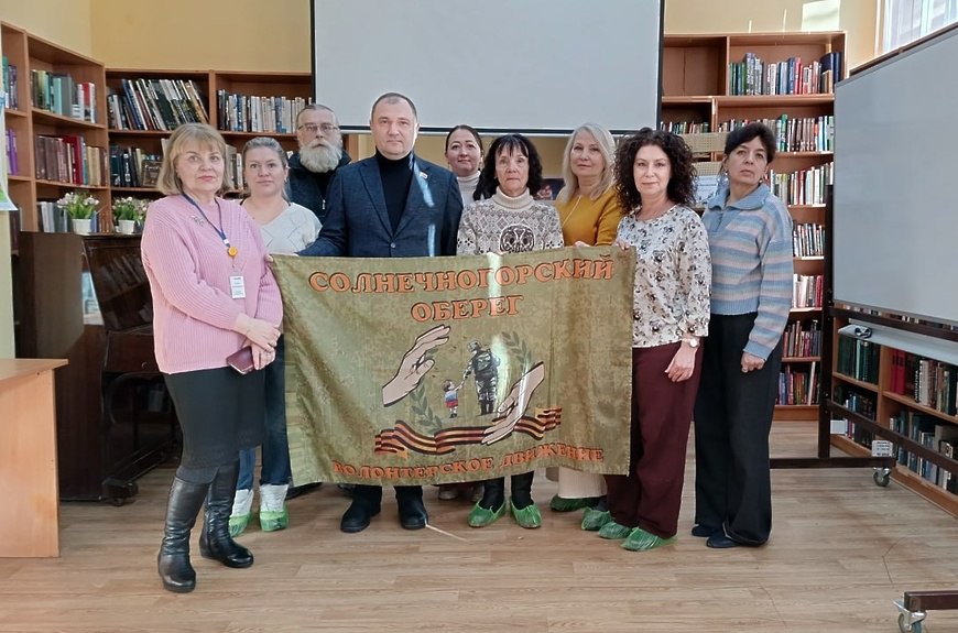 Встречу провели депутат местного отделения Единая Россия Михаил Каталин, руководитель волонтёрской организации Солнечногорский оберег Ольга Миронова и директор библиотеки Василина Забелина.