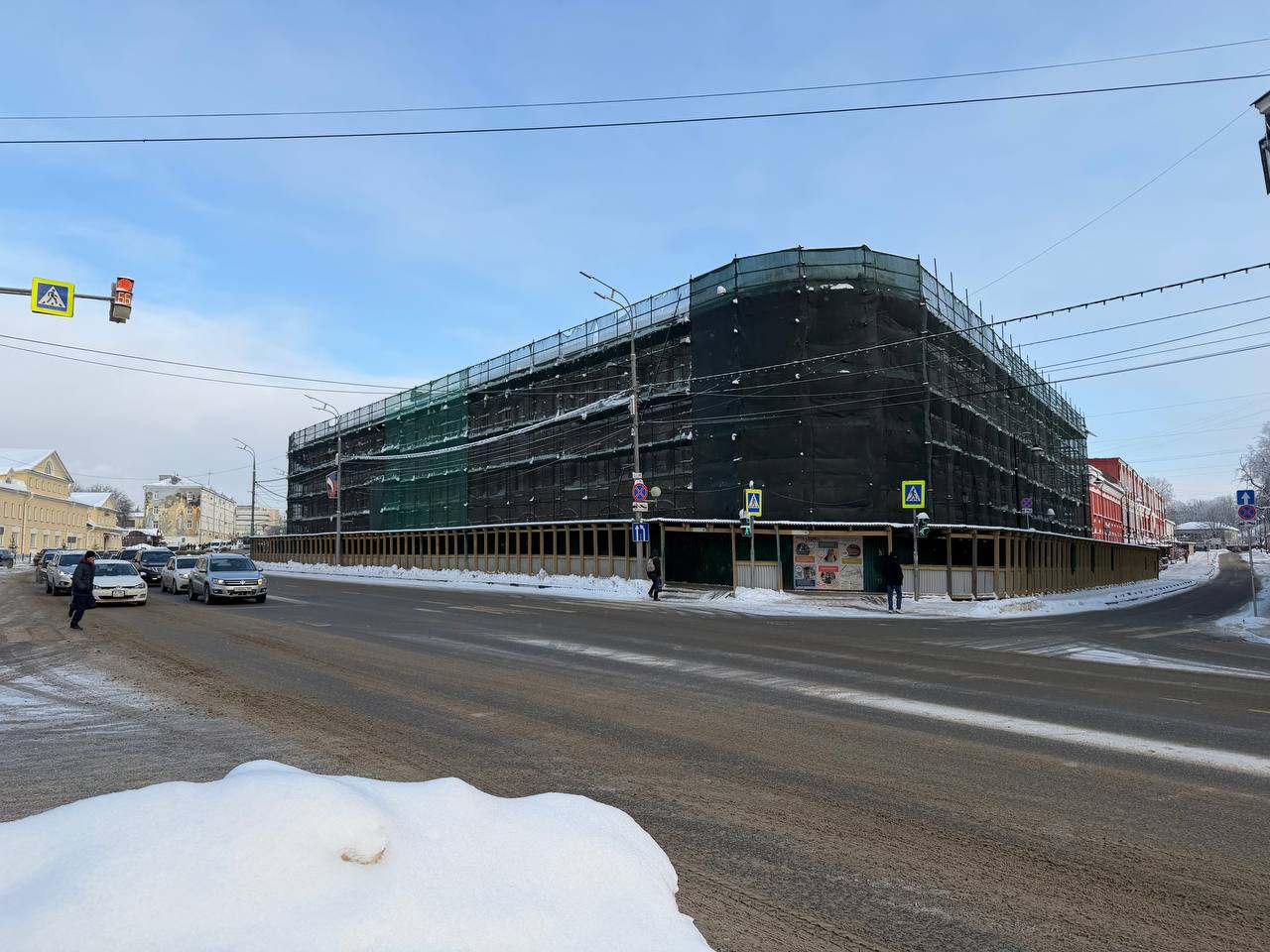Здание стоит в лесах после пожара уже довольно длительное время. Несмотря на то, что работы по его восстановлению ведутся, до полного их окончания ещё не так близко. Но