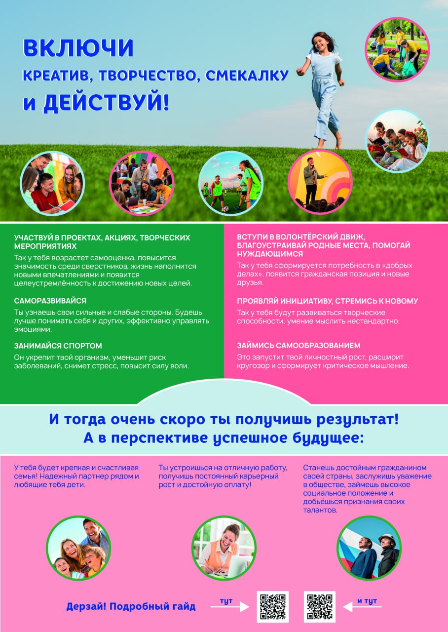 Проекты, волонтёрство, спорт, саморазвитие и самообразование всё это не просто активности для галочки, а шаги к уверенности в себе, новым друзьям и реальным результатам.