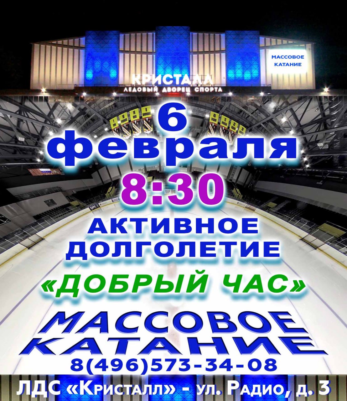 В ЛДС «Кристалл» и КТК имени Ионова А.С. пройдут массовые катания на льду и «Добрый час» для участников проекта «Активное долголетие».