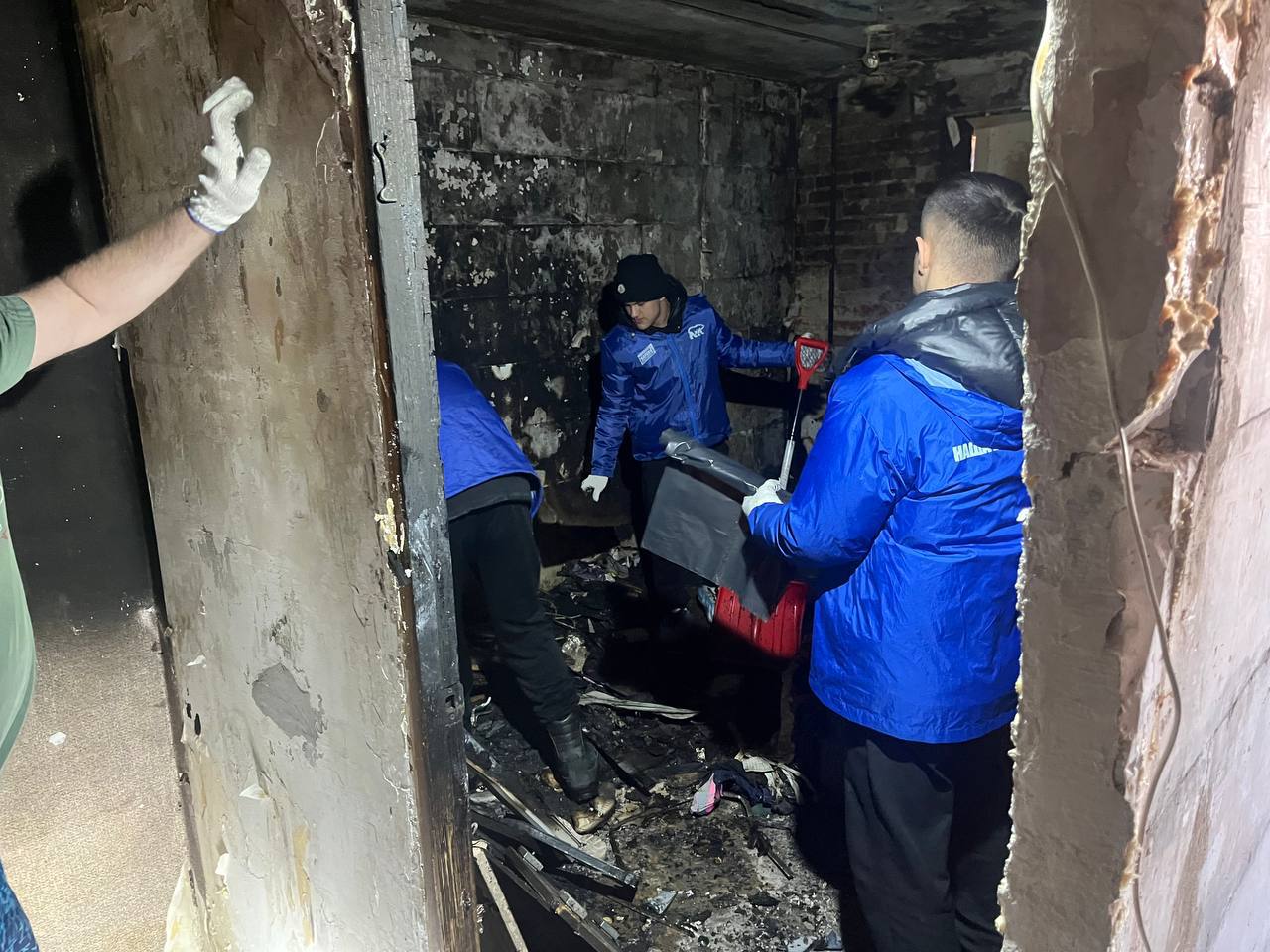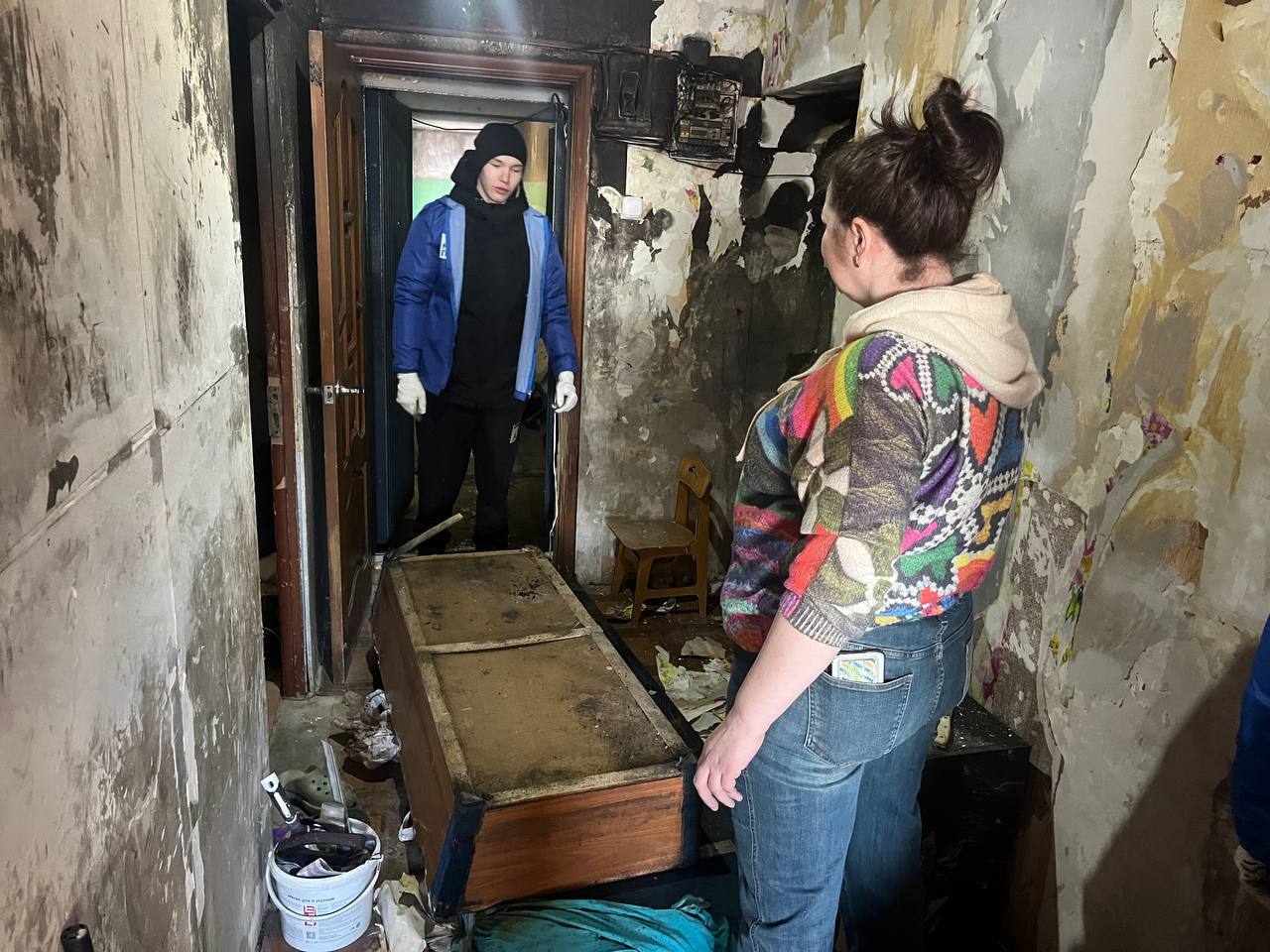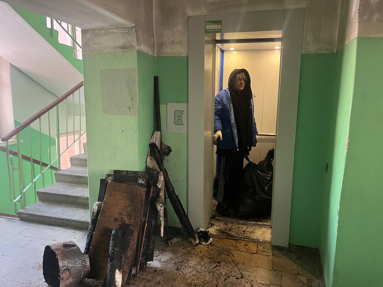 Добровольцы оперативно прибыли по адресу по обращению жительницы Екатерины. Они провели работы по разбору завалов, демонтировали и вынесли из квартиры поврежденные огнем вещи и мебель, которые не подлежали восстановлению. Все отходы были аккуратно сложены и подготовлены для вывоза и утилизации.