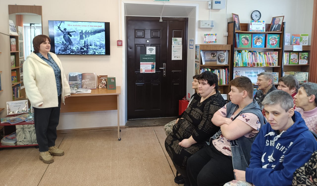 Для получателей социальных услуг Учреждения "ДОБРЫЙ ДОМ "ЧЕХОВСКИЙ" Троицкая библиотека провела час патриота «Меч победы ковал Сталинград», посвященный дню разгрома советскими войсками немецко-фашистских войск. Присутствующим на мероприятии вспоминали о ключевых событиях Сталинградской битвы, о героизме и силе духа защитников города, о тяжелейших испытаниях, выпавших на долю солдат и мирных жителей. Участники посмотрели документальные хроники, как в неравном бою доставалась победа нашему народу.