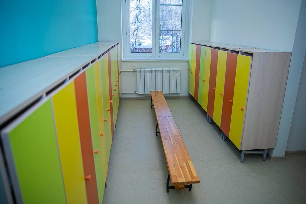Отдельно посмотрели, как организовано пространство внутри. В спальнях установили раздвижные кровати и тумбочки-лесенки: после сна всё компактно убирается и не мешает уборке. В каждой групповой есть своя небольшая кухня с мойкой — для бытовых мелочей и занятий с детьми.