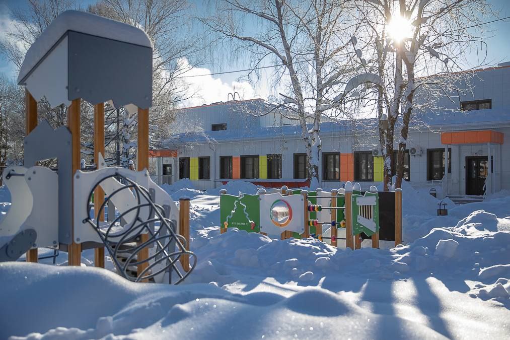 Здание и территория заметно изменились. Обновили фасады, сделали светлые игровые комнаты, современный пищеблок, удобные прогулочные площадки с прочными и безопасными игровыми элементами.