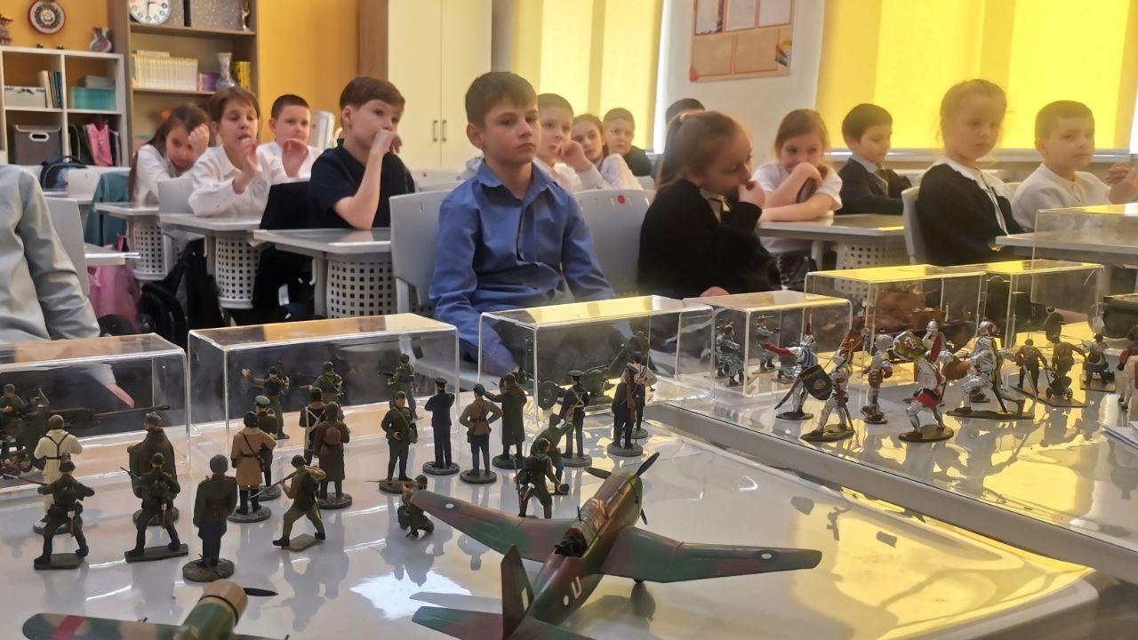 Второклассники с огромным интересом рассматривали экспонаты выставки, активно задавали кураторам выставки вопросы. Спрашивали о разном: сколько весит настоящий танк, чем кормили солдат в годы Великой Отечественной войны, сколько времени уходит на создание одной модели, какие материалы используются при их изготовлении.