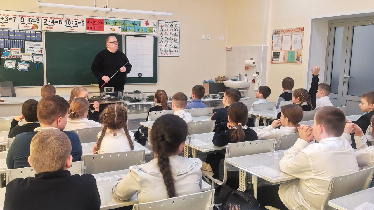 Изначально на торжественное открытие выставки предполагалось пригласить учащихся младших классов Центра образования №30. Но морозная погода внесла свои коррективы, поэтому организаторы выставки решили сделать сюрприз и пришли к ребятам в школу в гости. На один час школьные парты превратились в настоящие музейные витрины с экспонатами.