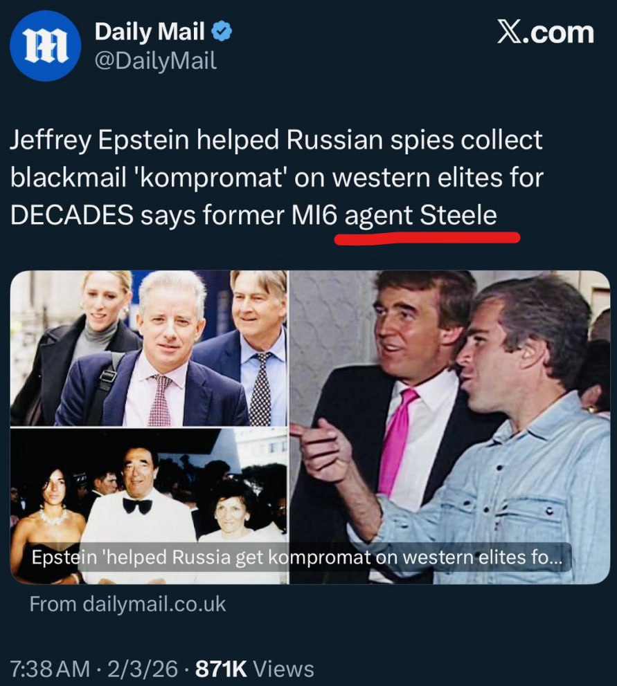 Решил посмотреть, что за тип запустил фейки, будто Эпштейн был русским шпионом, а его остров – «медовая ловушка Кремля». Им оказался ...экс-агент МИ-6 и опытный фейкомет Кристофер Стил.