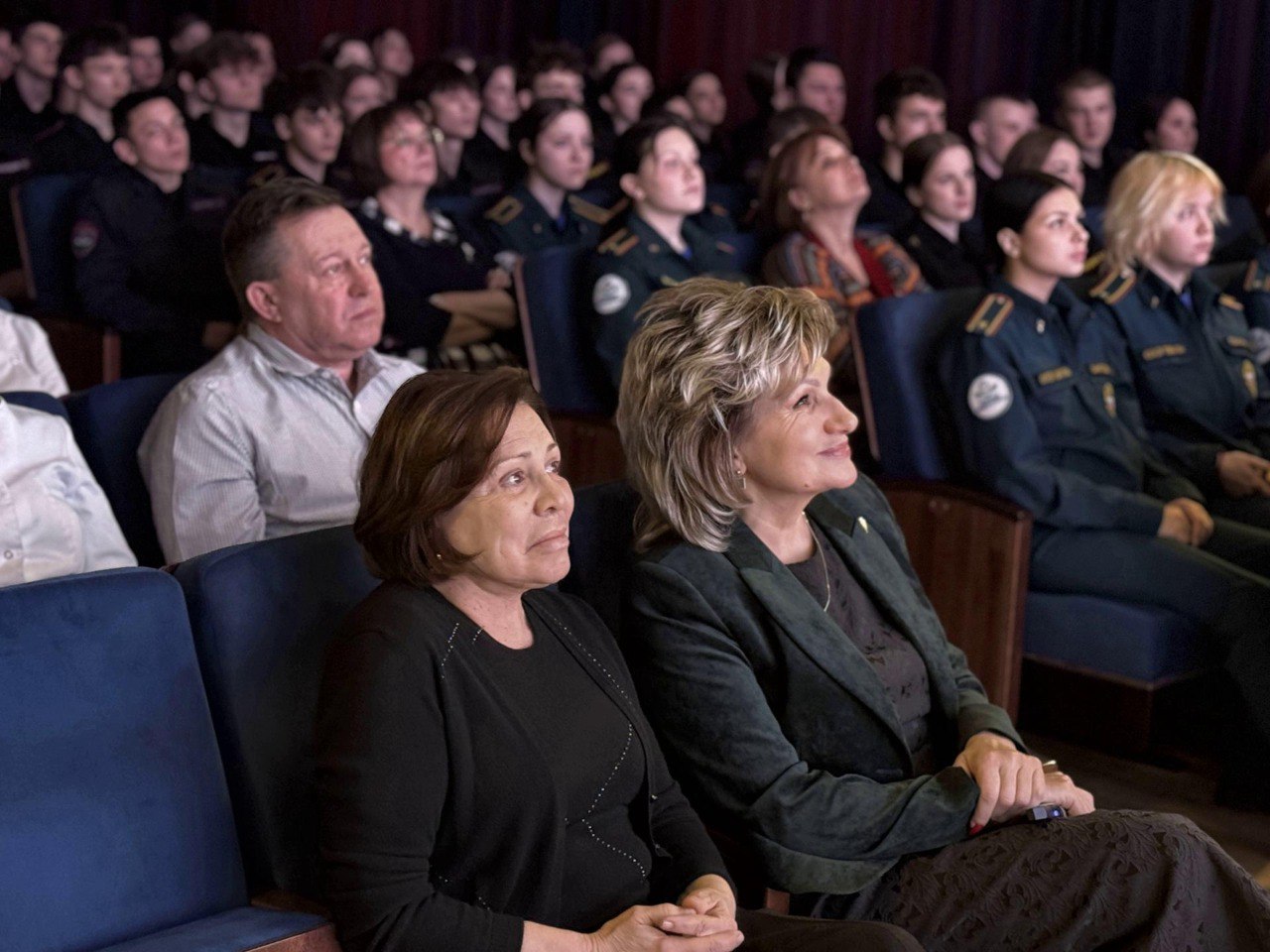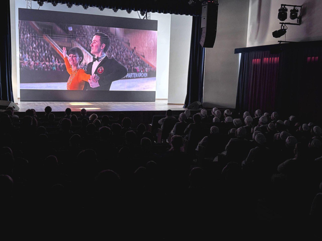 Студенты подготовили для гостьи сюрприз - видеофильм из архивных кадров, показывающих путь спортсменки от первых шагов на льду до мировых триумфов. Зал встретил ролик аплодисментами стоя.