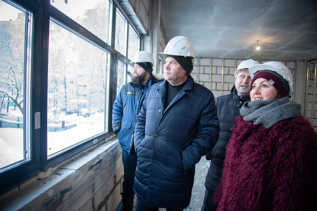Глава округа Александр Гречищев вместе с представителями родительского комитета проверили, как идет возведение нового корпуса-пристроя в школе №14.