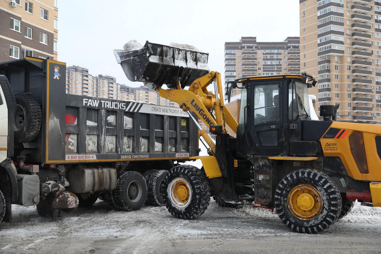 Продолжается уборка и вывоз снега с городских территорий. Самосвалы со снегом курсируют между жилыми кварталами и промзонами, где расположены площадки для складирования.