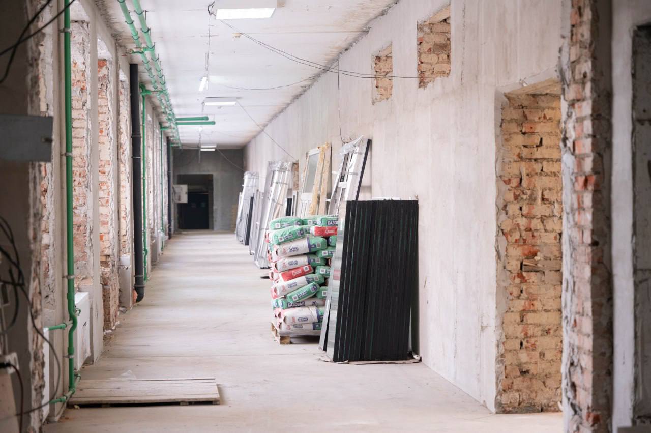 Капитальный ремонт школы и детского сада образовательного комплекса Орбита в мкр. Авиационный идёт по плану.