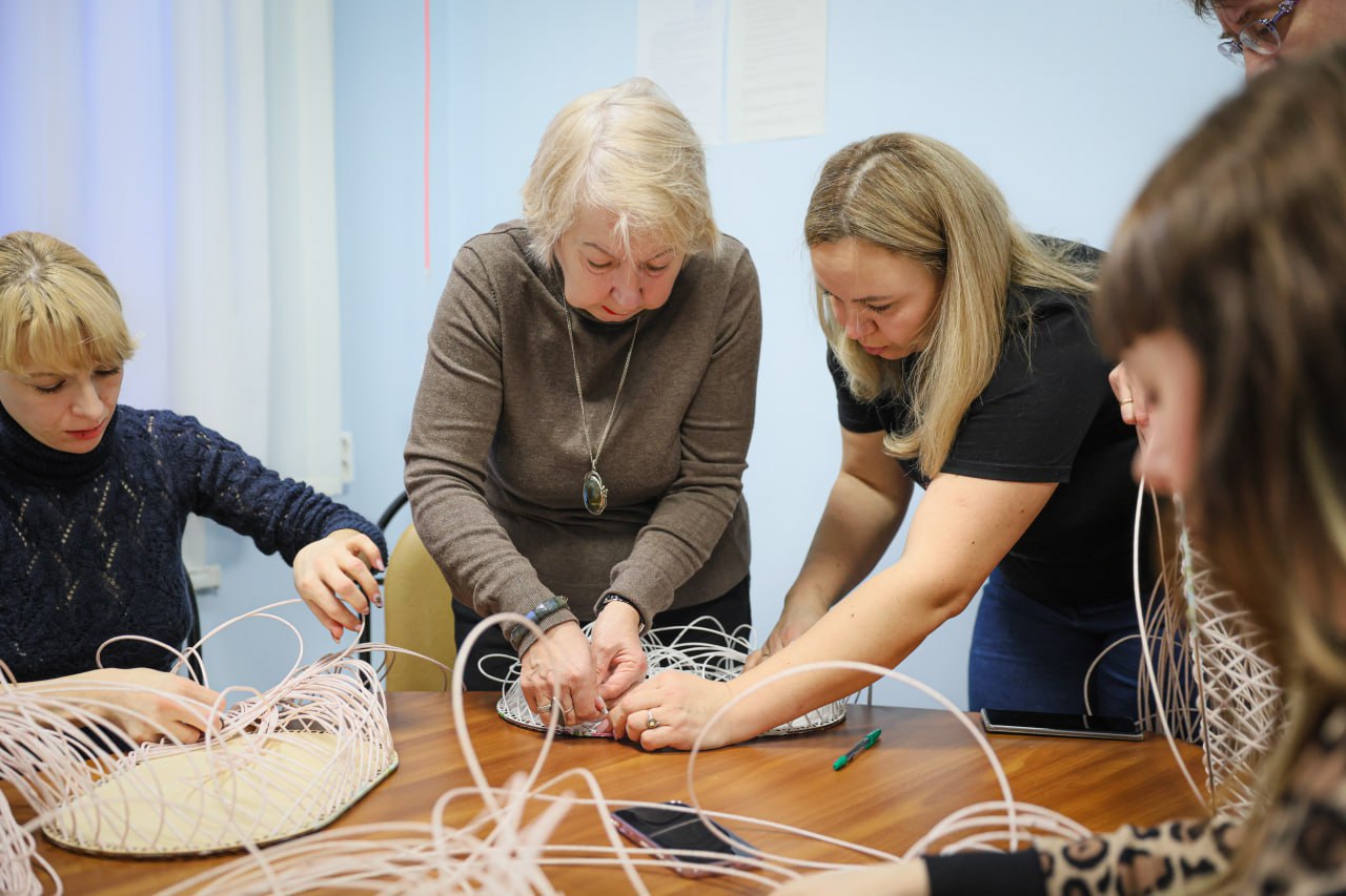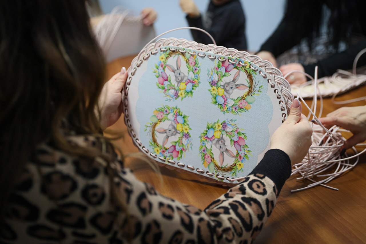 Первое занятие в стенах Ликино-Дулевского отделения провела Анна Михрячева: она научила мам плести корзины из ротанга и украшать их в технике декупажа.