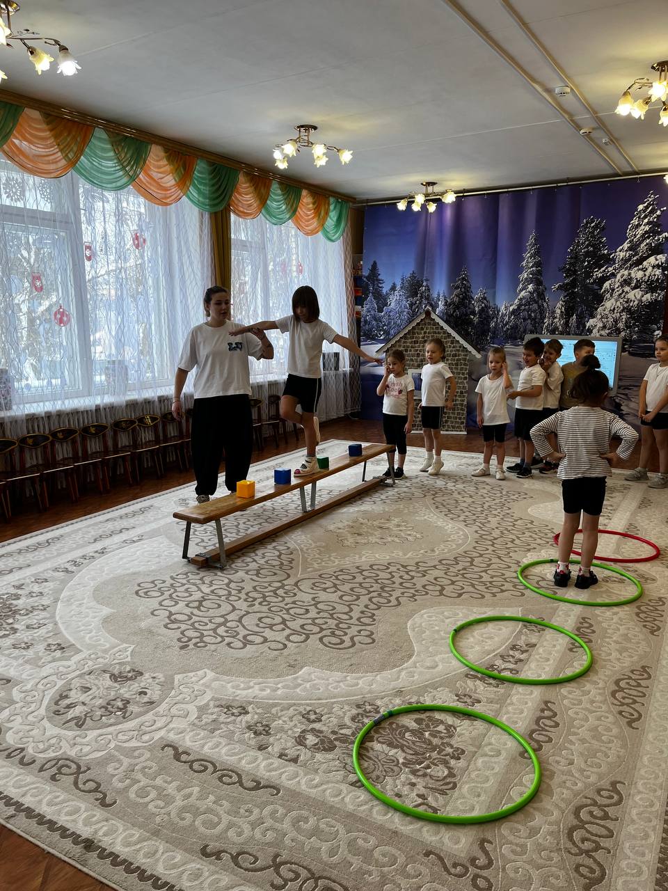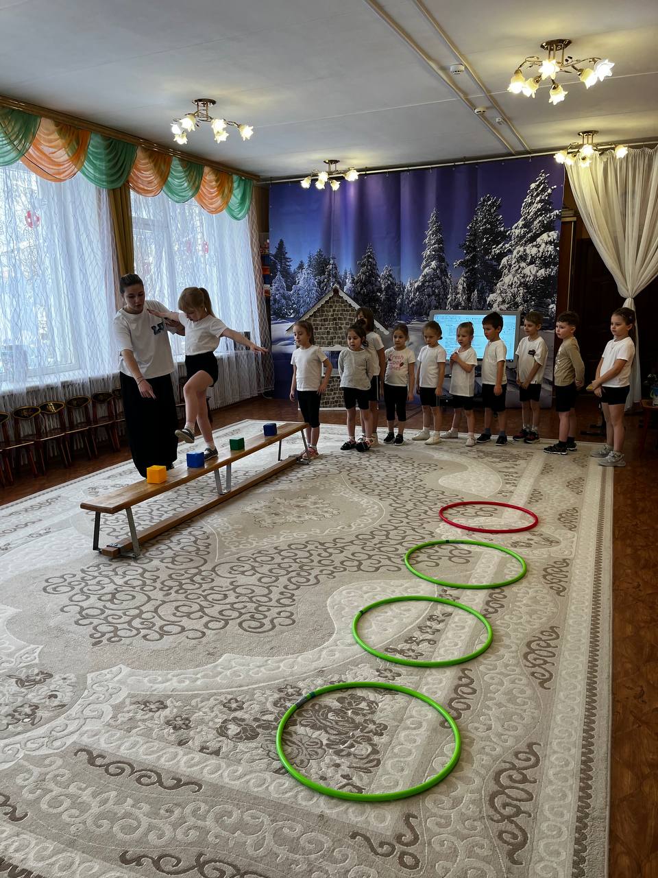 Дети активно осваивали различные виды движения, учились сохранять равновесие, шагая по гимнастической скамейке – это не только тренирует координацию, но и учит быть уверенными и смелыми.