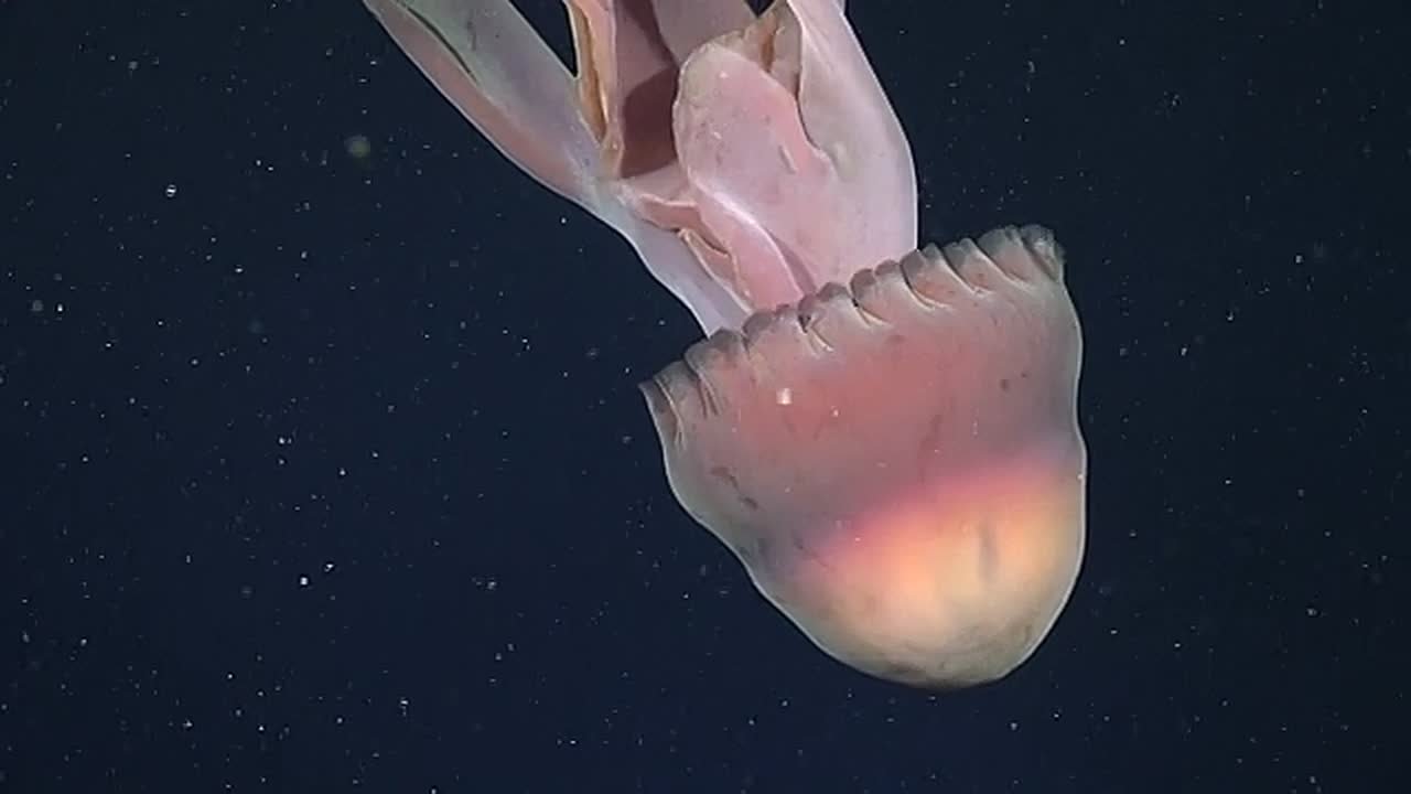 Исследователи Океанографического института Шмидта опубликовали редкие кадры Stygiomedusa gigantea, снятые в Атлантике. За более чем 110 лет изучения океана этот вид фиксировали всего около 130 раз.