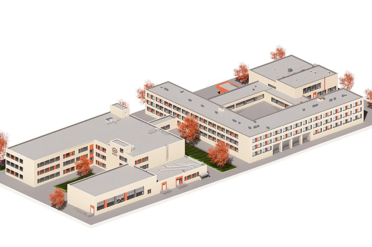 Новое здание оборудуют современной IT-зоной, спортивным и актовым залами, комфортной столовой, медицинским пунктом и административным блоком. Территория вокруг здания включает спортплощадку, детскую игровую зону и площадку для массовых школьных мероприятий.