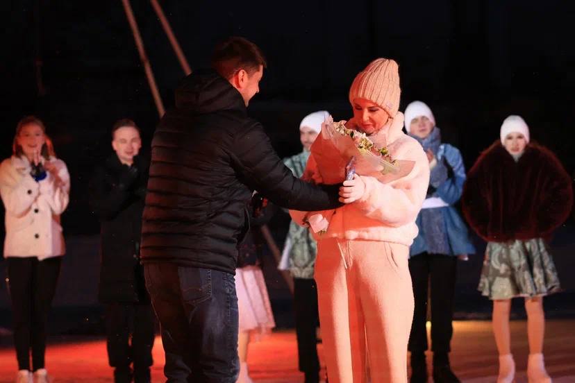 Благодарю заслуженного мастера спорта, чемпионку Европы и мира, призёра Олимпийских игр по фигурному катанию Ирину Эдуардовну Слуцкую, а также всю команду спортсменов и артистов за талант, высочайшее мастерство и ту энергию, которую вы сегодня подарили зрителям. Для нашего города большая честь принимать артистов такого уровня.
