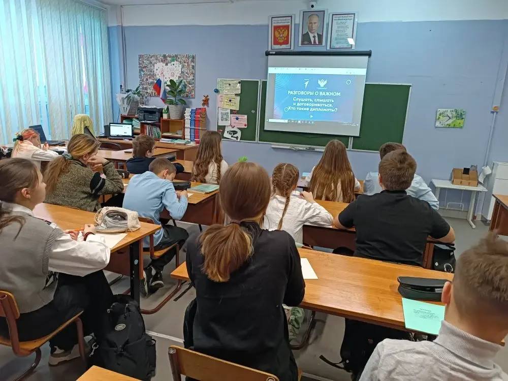 Во всех классах прошли классные часы в рамках программы «Разговоры о важном». Сегодня ломали голову над крутой темой: « Кто такие дипломаты?»