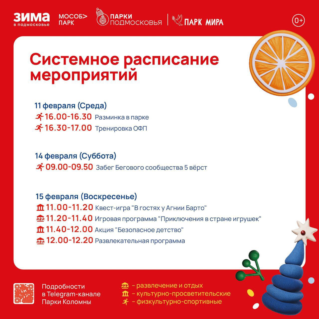 Программа выходного дня в парках порадует новинками. В сквере имени В. А. Зайцева посетители смогут поучаствовать в развлекательной программе и совершить путешествие в страну стихов. В парке Мира состоится квест-игра В гостях у Агнии Барто. В Сосновом бору в Озёрах запланирован мастер-класс по изготовлению игрушек