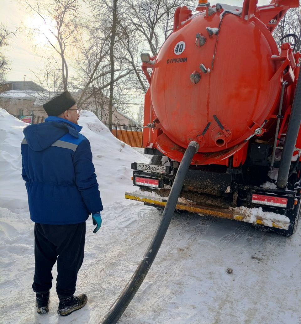 на ул. Октябрьской в Пушкино коммунальщики откачали КНС и прочистили насос
