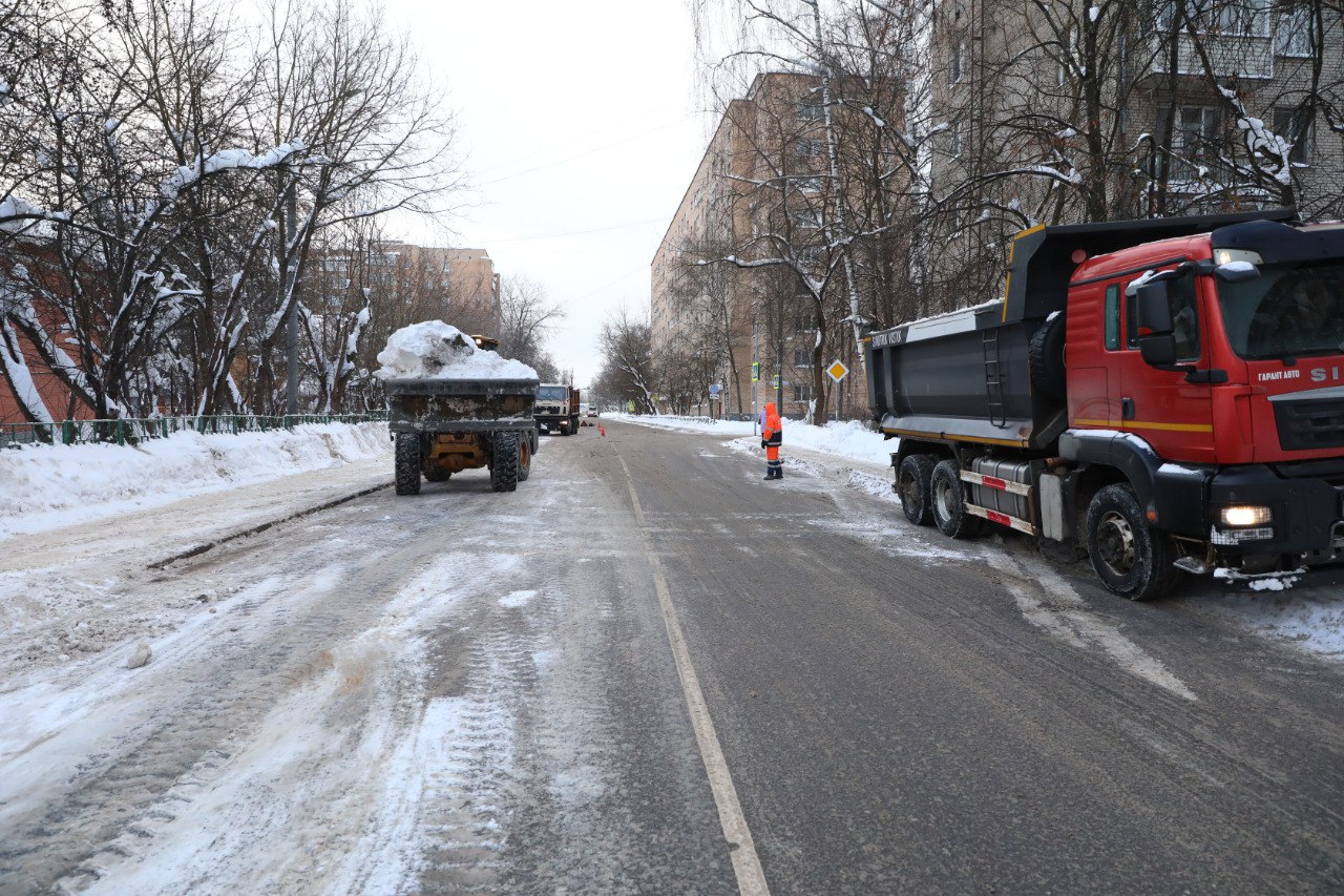 Горы снега по обочинам муниципальных дорог Долгопрудного не успели достигнуть критических высот – запас кристаллических осадков в небесах, видимо, иссяк, и городские коммунальные службы сконцентрировались на вывозе снежных масс.